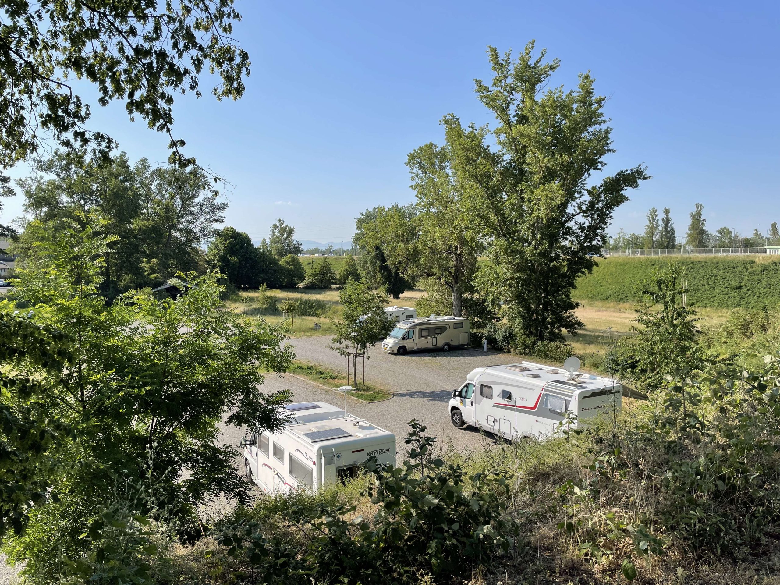 Au bord du Rhin ou à côté de la piste cyclable Euro Vélo 15, vous trouverez en Alsace Rhin Brisach des aires de stationnement et de services pour camping-cars pour un séjour paisible en pleine nature !