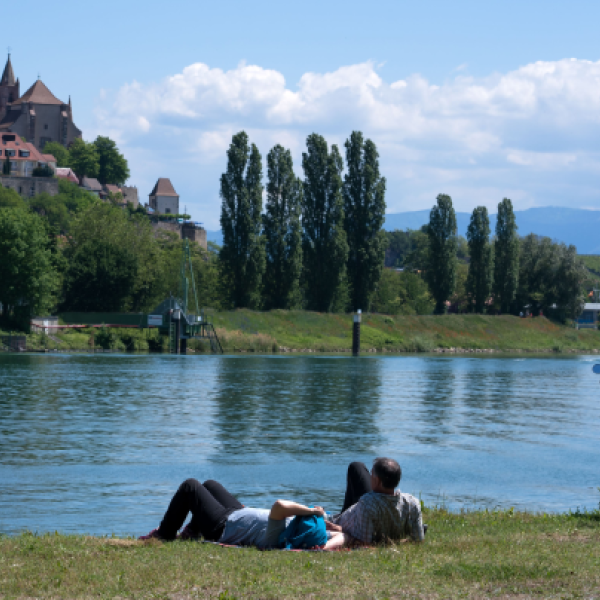 La baignade dans le fleuve est interdite et peut être dangereuse, notamment proche des écluses, barrages et centrales hydroélectriques. De plus, la baignade dans le Rhin n’est jamais surveillée.