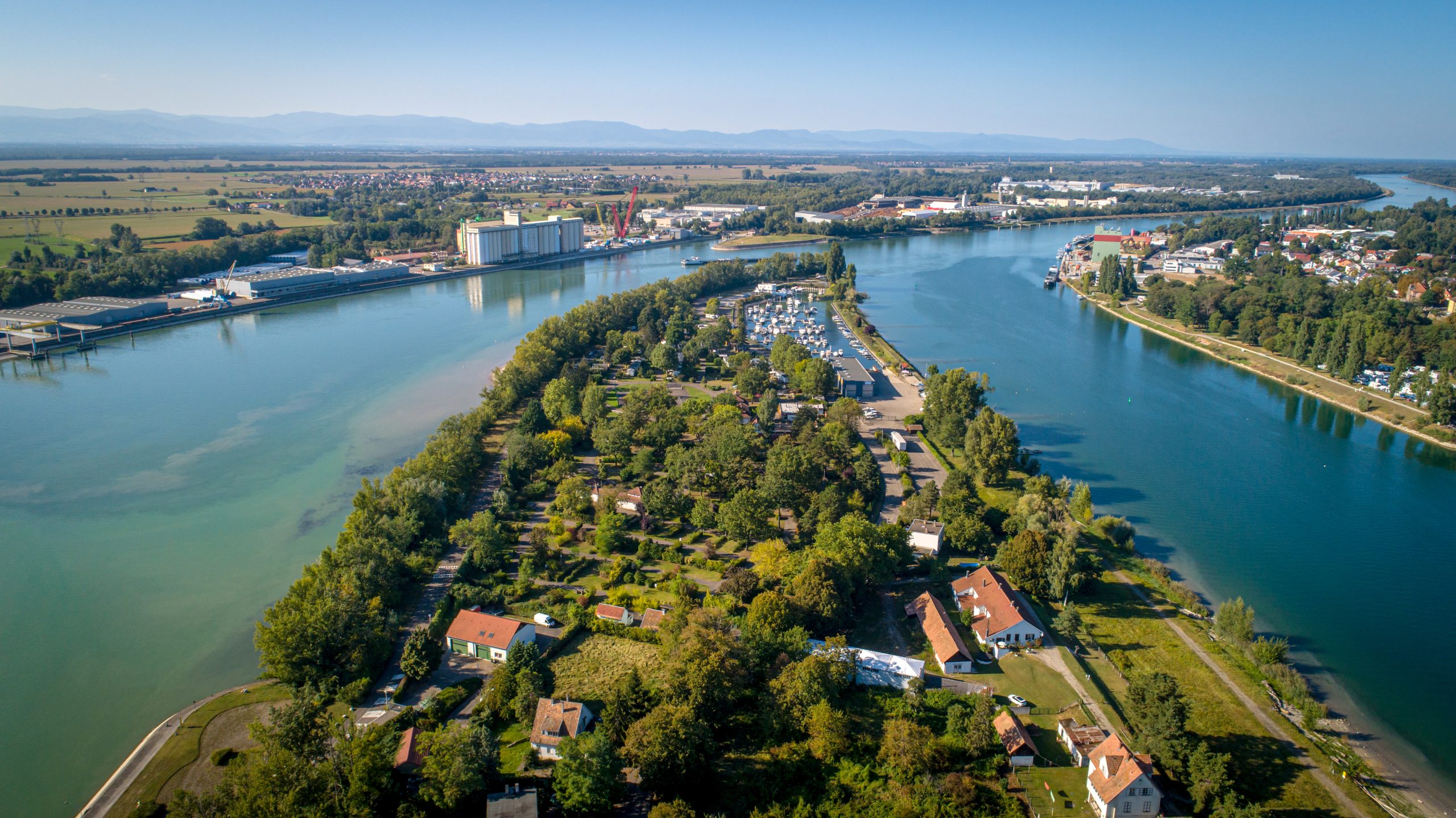 Sa pointe nord, au niveau de Vogelgrun, est aujourd’hui un cadre naturel idéal pour vous amuser ou vous détendre au bord du Rhin !